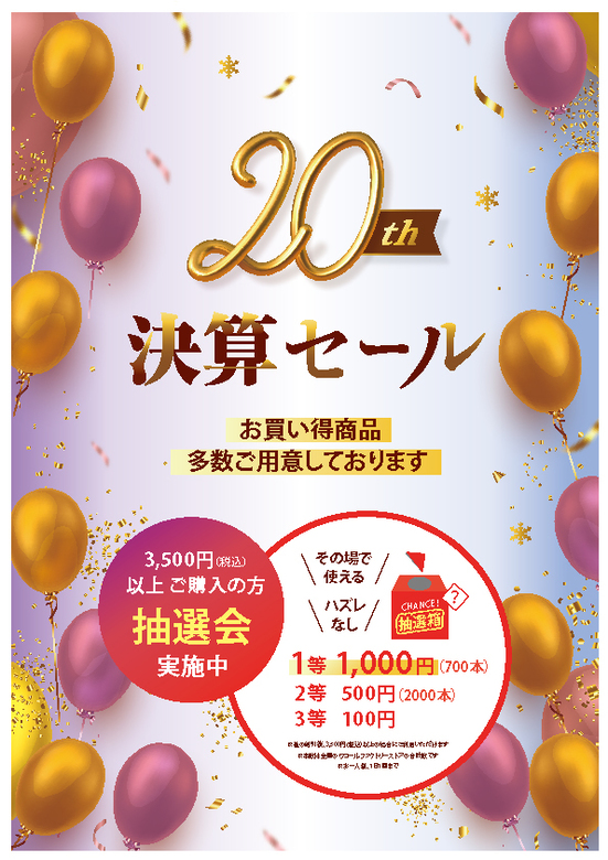 決算セール 抽選会開催中! ご好評につき期間延長♪