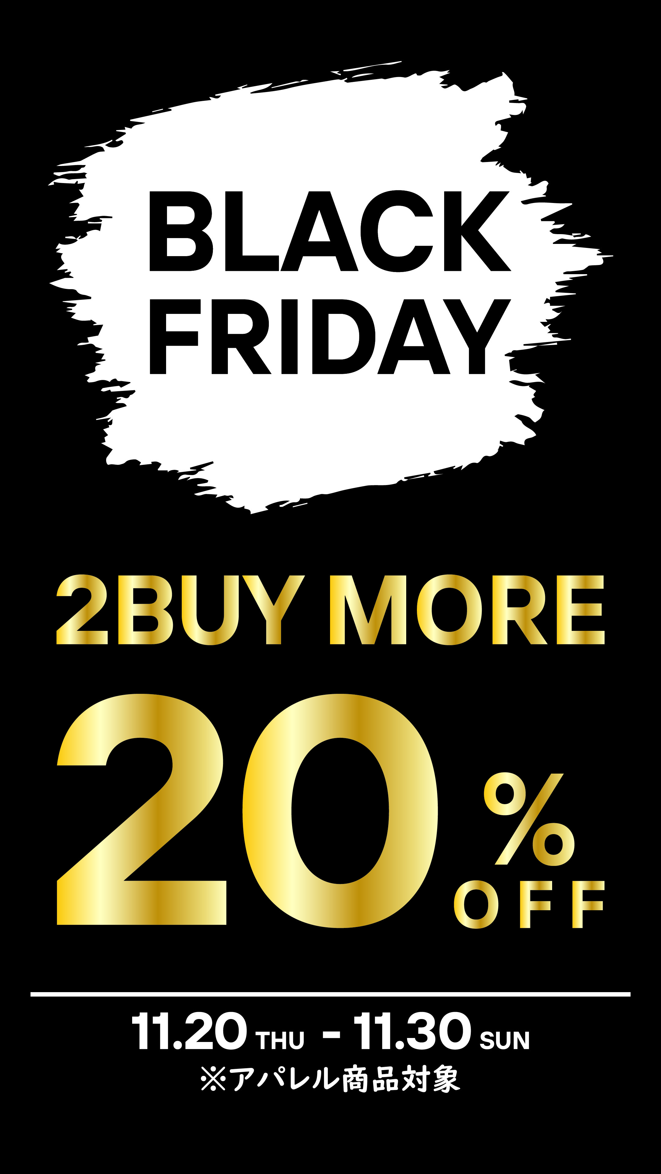 アパレル商品2点以上ご購入で、レジにて更に20%OFF!!