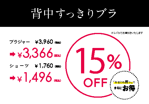 大人気【背中すっきりブラ】の期間限定値下げを実施します。