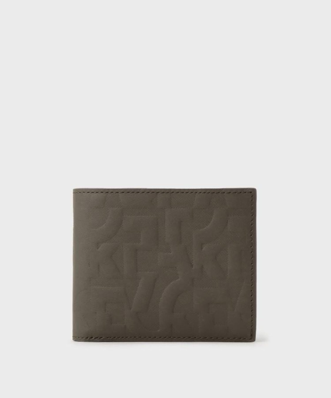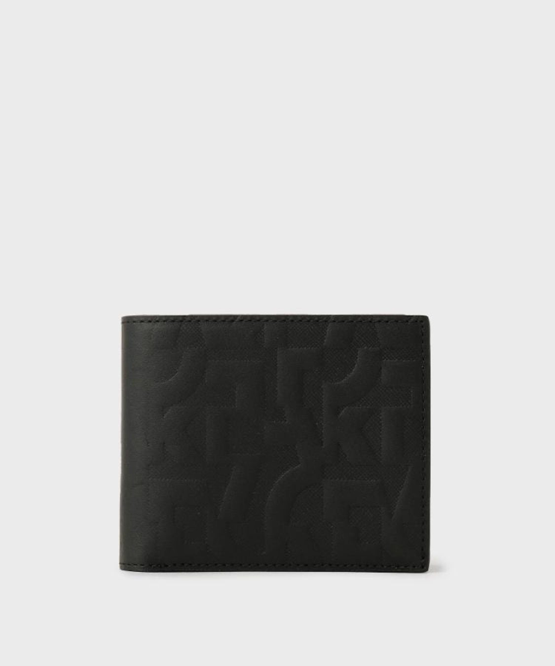 オリジナルの型押しレザーを使用した2つ折り財布。