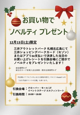 三井ショッピングパークメンバーズプログラム 毎月当たる!プレゼントキャンペーン12/1~31