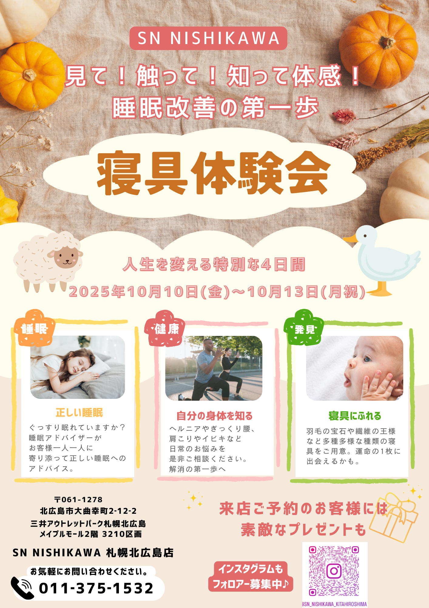 寝具のSN NISHIKAWA 「寝具体験会」のご案内!