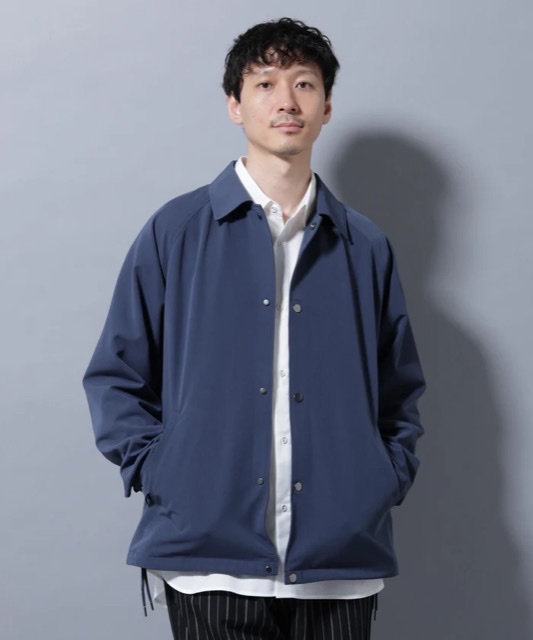 上品な生地感で仕上げたコーチジャケット。フロントはシンプルなスナップボタンを採用し開閉しやすいデザインに。秋のスイッチシーズンに1枚あると活躍間違いなしの、大人コーディネートに重宝するアイテムです。