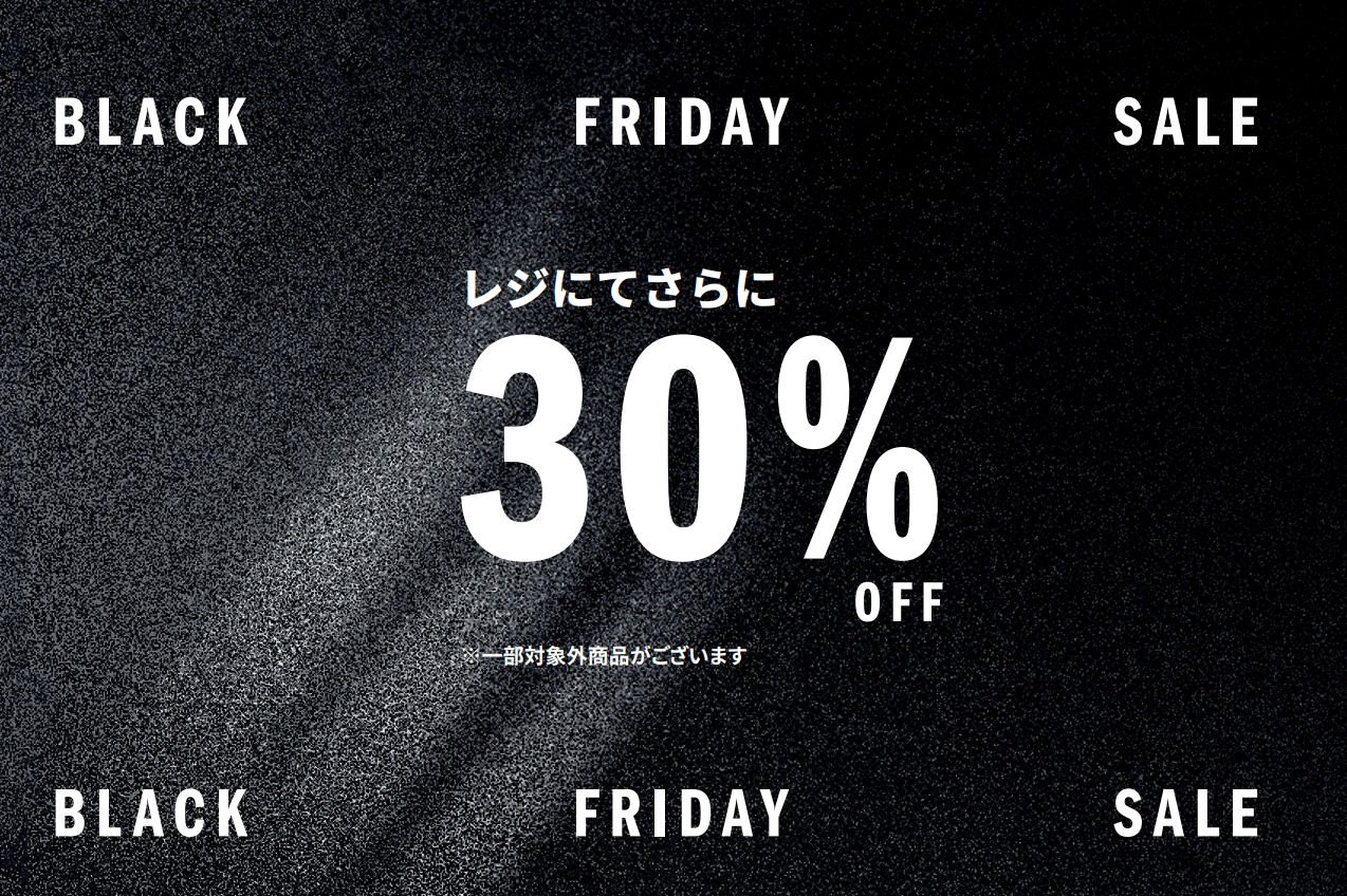 ただいま当店では店内商品が30%OFFとなるBLACK FRIDAY SALEを開催しております。