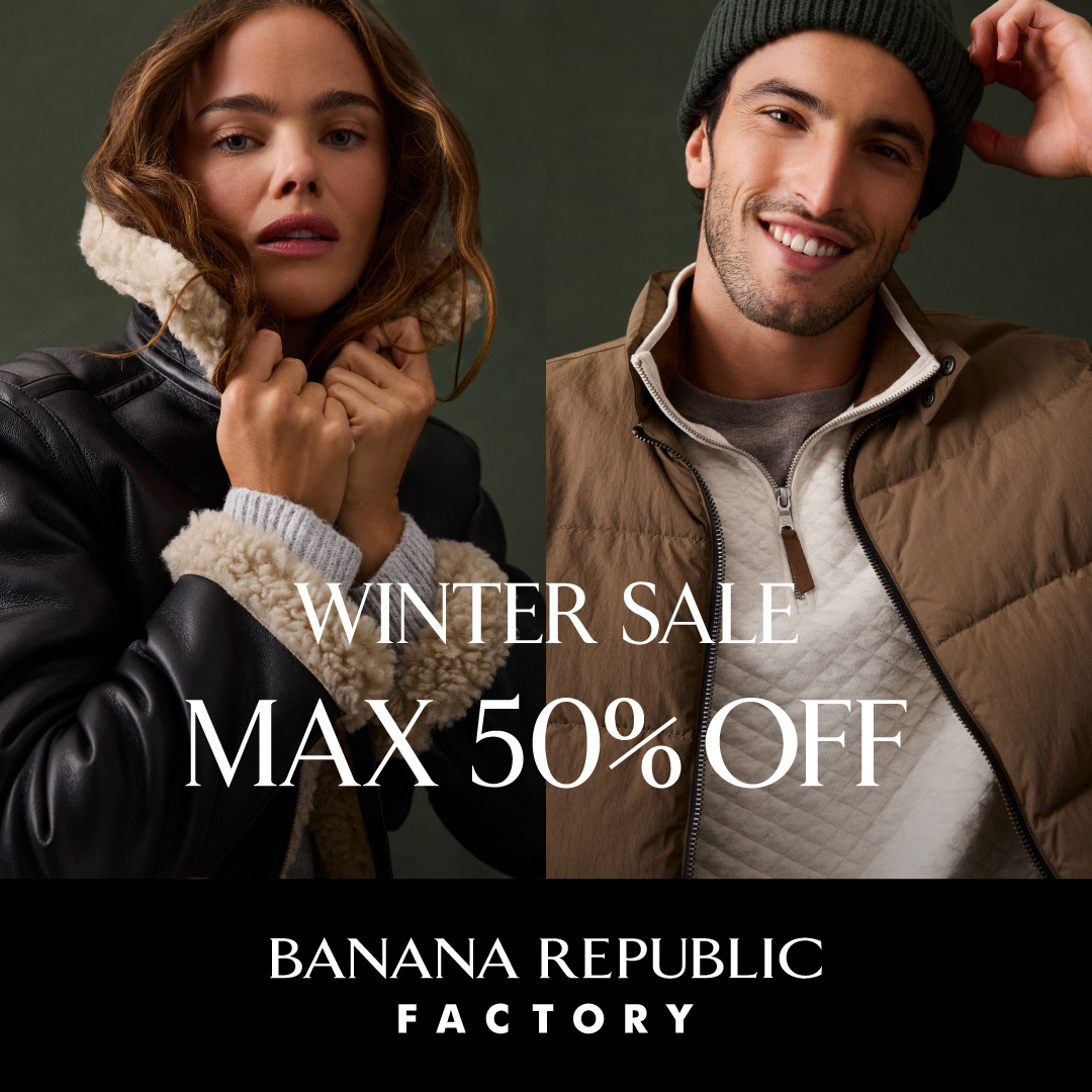 12/21(日) –1/12(月)の期間、冬物特別セールを実施中!店内最大50%OFFととってもお得に!!!まだまだ使えるアウター、セーター、パンツなどアイテム多数!数量限定の商品もあります。ぜひお早めにメープルモール2Fのバナナ・リパブリックファクトリーストアへお立ち寄りください。