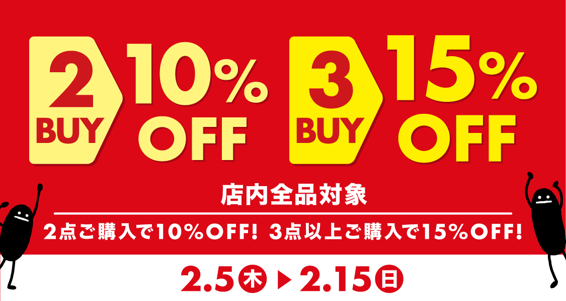 《店内全商品対象》2BUY10%OFF・3BUY15%OFFキャンペーンを開催中です!
