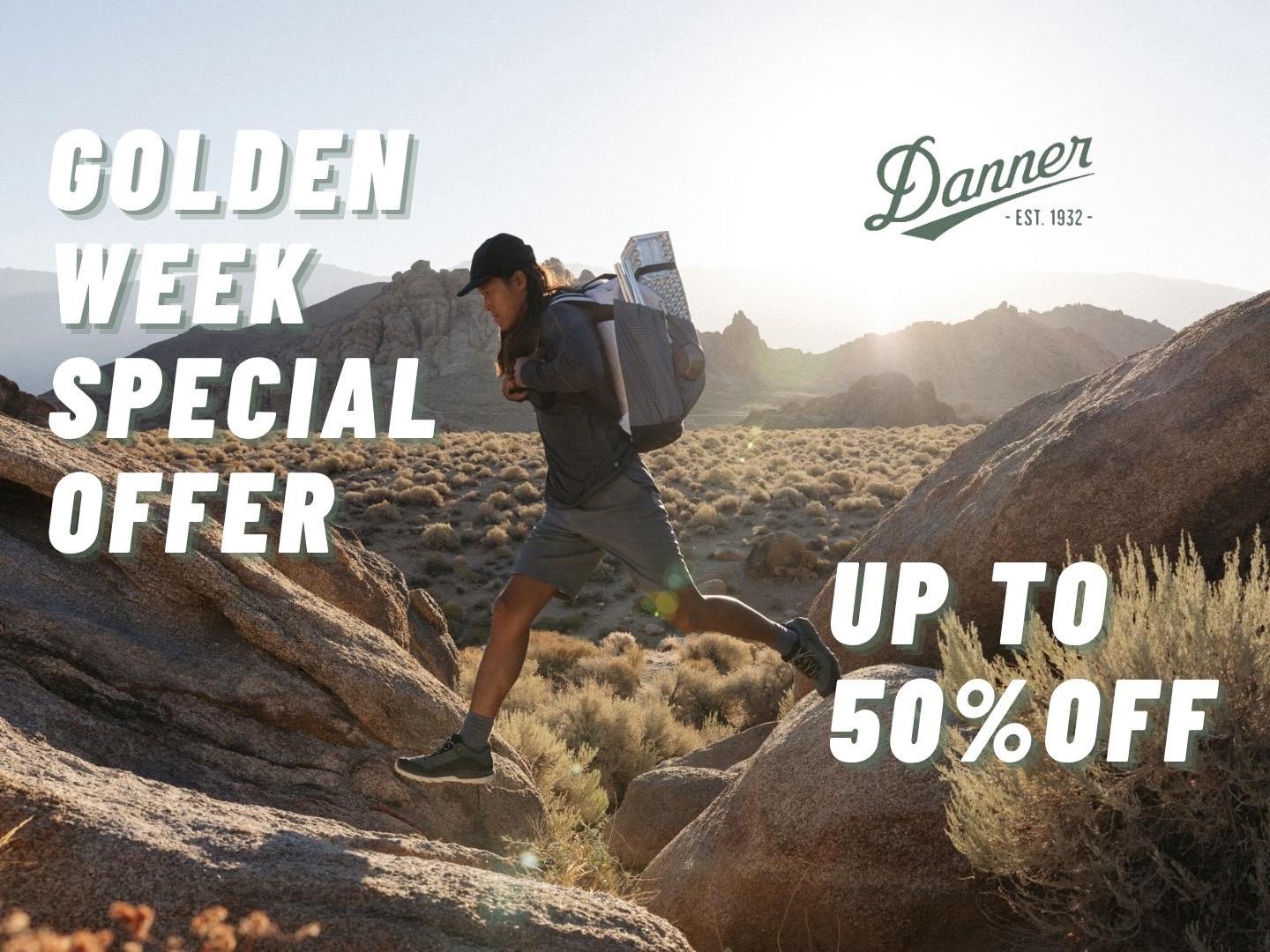 DANNERではゴールデンウィークの期間中の特別価格商品をご用意しております。ワークブーツ、アウトドアシューズやアパレルグッズなど定番商品から新入荷アイテムまで幅広いラインナップ!お得なこの機会に是非お越しくださいませ。