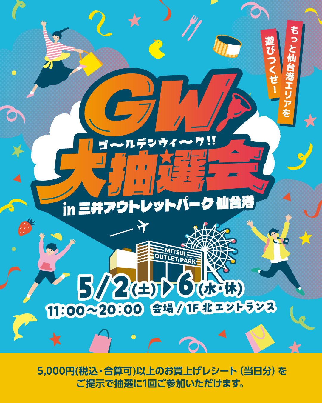 5,000円(税込・合算可)以上のお買上げレシート(当日分)をご提示で、抽選に1回ご参加いただけます。