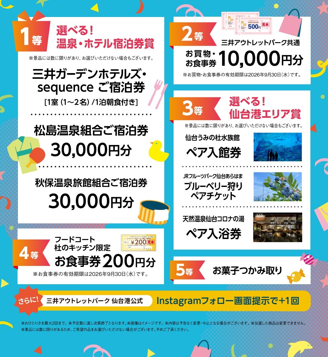 さらに!三井アウトレットパーク 仙台港公式Instagramフォロー画面提示で+1回ご参加可能です!