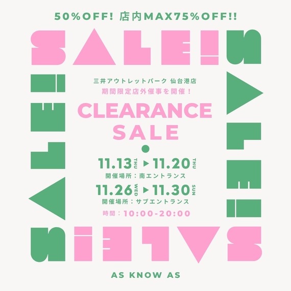 トップニュースショップニュース ショップニュース カテゴリー ショップ ジャンル 複数選択で検索することができます。 レディス メンズ/レディス メンズ キッズ スポーツ&アウトドア シューズ&バッグ ファッショングッズ グッズ&バラエティ ウォッチ&アクセサリー グルメ&フード サービス 期間限定ショップ 検索する 50音順 あ か さ た な は ま や ら わ ABC順 A B C D E F G H I J K L M N O P Q R S T U V W X Y Z 0-9 複数選択で検索することができます。 おすすめ 限定 キャンペーン・セール ショップイベント コーディネート 商品・ブランド特集 チラシ情報 福袋 お知らせ・その他 検索する ショップニュース一覧 すべて 全43件 限定 YOASOBI 岩手公演記念コラボクールバッグ&盛岡冷麺セット 先行予約スタート ぴょんぴょん舎 オンマーキッチン 10/03 更新 限定 土曜日限定「平田牧場2種丼」が新登場 豚丼・日本酒 まる家 08/29 更新 商品・ブランド特集 GUCCI新作商品入荷 Lunetterie 11/08 更新 NEW お知らせ・その他 人気のメディヒール入荷いたしました☆ SUNSMARCHE BY SUNSMILE 11/07 更新 NEW 限定 ☆11月のLINE限定クーポン配信中☆ SUNSMARCHE BY SUNSMILE 11/07 更新 NEW おすすめ ☆SNIDEL☆ gelato pique / SNIDEL 11/08 更新 NEW おすすめ LONG PEACOAT Shel’tter/moussy 11/07 更新 NEW おすすめ GLITTER SHAGGY KNIT CD Shel’tter/moussy 11/07 更新 NEW おすすめ クロコダイルレザーグッズが再入荷いたしました。 carcru stock 11/08 更新 NEW ショップイベント 店外催事開催のお知らせ AS KNOW AS outlet 11/06 更新 NEW おすすめ 甘くて温まる冬仕様のアメリカーノ! TULLY’S COFFEE 11/05 更新 NEW おすすめ ラム香る大人のミルクティー! TULLY’S COFFEE 11/05 更新 NEW おすすめ 香ばしいピスタチオにドバイチョコレートの食感がアクセント! TULLY’S COFFEE 11/05 更新 NEW キャンペーン・セール ティファールストア ブラックフライデー T-fal Outlet Store 11/05 更新 NEW お知らせ・その他 ワコール ブラリサイクル実施中! Wacoal FACTORY STORE 11/03 更新 NEW ショップイベント タリーズコーヒースクール開催 ご予約受付中! TULLY’S COFFEE 11/01 更新 おすすめ 新作コーデュロイセットアップ THE THIRD SUITS® ORIHICA 11/04 更新 NEW おすすめ 脚をまっすぐキレイに見せる フラミンゴPANTS®︎ ORIHICA 11/04 更新 NEW おすすめ コーチ ウィンター コレクション COACH MEN'S FACTORY 11/10 更新 NEW おすすめ コーチ ウィンター コレクション COACH 11/10 更新 NEW おすすめ オフィスダウン ORIHICA 11/04 更新 NEW おすすめ ☆新商品入荷☆AOU GLOWY TINT BALM SUNSMARCHE BY SUNSMILE 10/28 更新 キャンペーン・セール ティファールストア新米プレゼントキャンペーン T-fal Outlet Store 10/28 更新 おすすめ ビズマウンテンパーカ ORIHICA 11/04 更新 NEW おすすめ 【Snowブーツ】入荷のお知らせ! QUIKSILVER Factory Outlet Store 10/25 更新 おすすめ 長く愛用できる。機能美が際立つドレスウォッチ紹介 CITIZEN 10/26 更新 おすすめ MD HEART KNIT / MINNIE Shel’tter/moussy 10/25 更新 おすすめ 【LVモノグラムシリーズ買取強化キャンペーン】 BRAND OFF 11/01 更新 おすすめ 【おすすめシューズのご紹介】 ASICS FACTORY OUTLET 10/24 更新 おすすめ ☆お得な秋のスキンケアセット入荷しました☆ SUNSMARCHE BY SUNSMILE 10/24 更新 キャンペーン・セール ティファールストア圧力鍋レシピブックプレゼントキャンペーン T-fal Outlet Store 10/21 更新 おすすめ MOUSSY ファーアウター Shel’tter/moussy 10/16 更新 おすすめ GLITTER MOUSSY KNIT TOP Shel’tter/moussy 10/16 更新 キャンペーン・セール アプリ登録ですぐに使える550円OFFクーポンプレゼント ORIHICA 10/09 更新 おすすめ 簡単・便利・経済的!ジャケパンスーツ ORIHICA 11/08 更新 NEW おすすめ 新作登場! crocs 10/11 更新 限定 【アウトレット限定】形態安定ワイシャツ3点6,050円(税込) ORIHICA 11/04 更新 NEW おすすめ 【ザモール仙台長町店3周年記念合同企画キャンペーン】 BRAND OFF 10/01 更新 おすすめ 特許取得!ORIHICAアンクルガードソックスのご案内 ORIHICA 09/25 更新 おすすめ ワードローブを涼しげに kate spade new york 07/16 更新 限定 アウトレット限定 ブライダル3点セット Milluflora OUTLET 09/14 更新 限定 特別価格ペアリング・マリッジリング Milluflora OUTLET 03/06 更新 商品・ブランド特集 TVCMでも話題!【コラントッテ】入荷しました! Milluflora OUTLET 09/14 更新