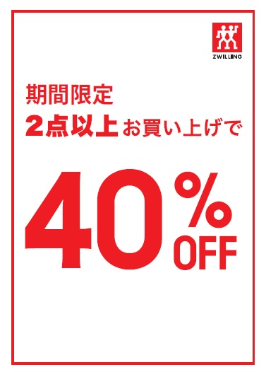 店内商品2点以上のお買上で40%OFF!!