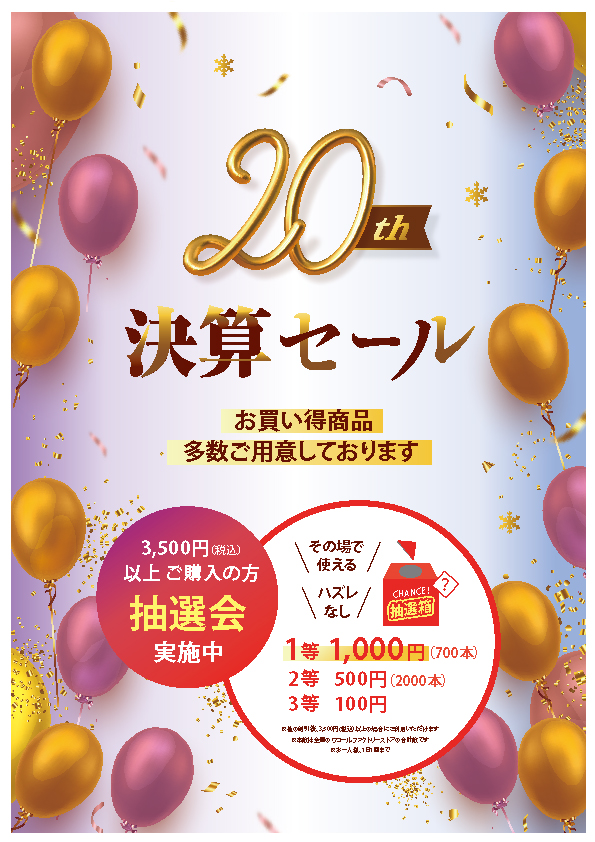 期間中、その場で使える金額割引券があたる抽選会を開催!(税込3,500円以上購入のお客様が対象)