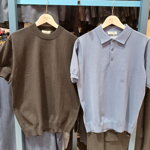 こちらは、よりクラシックで品格のある印象を与えるニットポロシャツです。 しっかりとした襟元と、ニット素材特有の柔らかな風合いが、大人の余裕と清潔感を演出します。