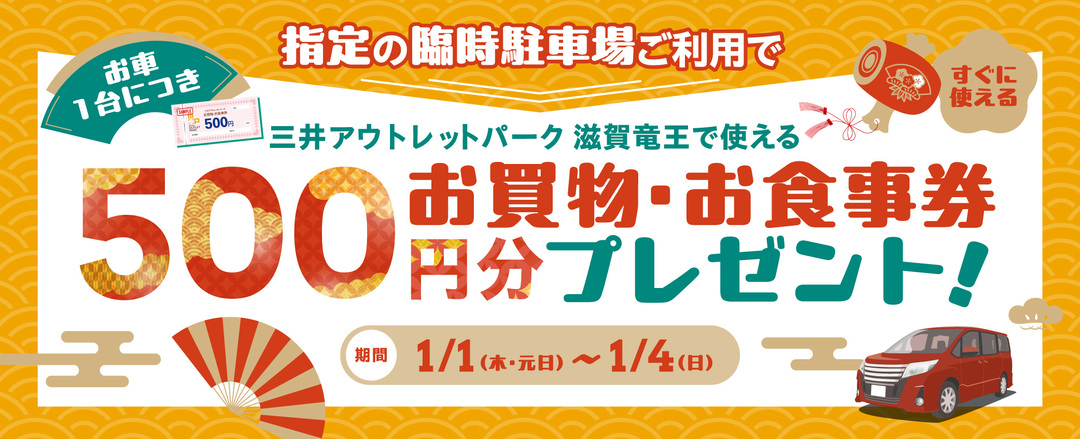 指定の臨時駐車場ご利用で500円分のお買物・お食事券プレゼント!