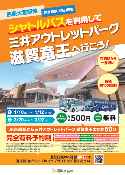 四条大宮駅発⇔三井アウトレットパーク 滋賀竜王 期間限定運行シャトルバス