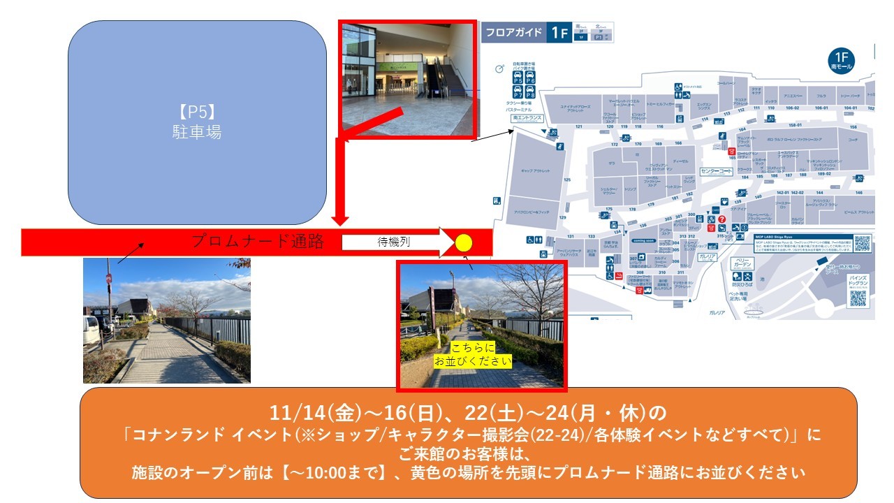 ◇11/14(金)~16(日)、22(土)~24(月・休)は、施設のオープン前【~10:00まで】の待機場所が添付図面となります、ご確認くださいませ◇