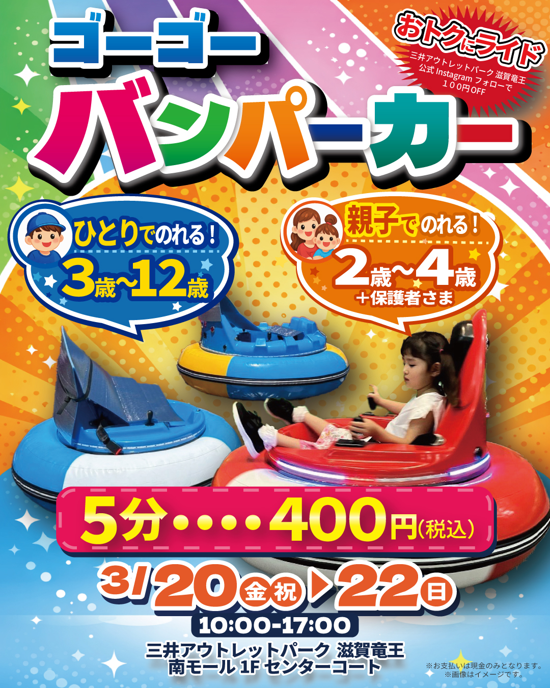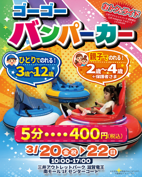 - 3/20(金・祝)~3/22(日) バンパーカーイベント開催!