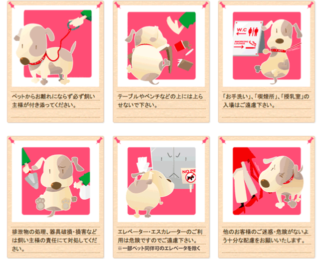 ペットをお連れのお客様にペットマナーのルールのご理解とご協力をお願い申しあげます。