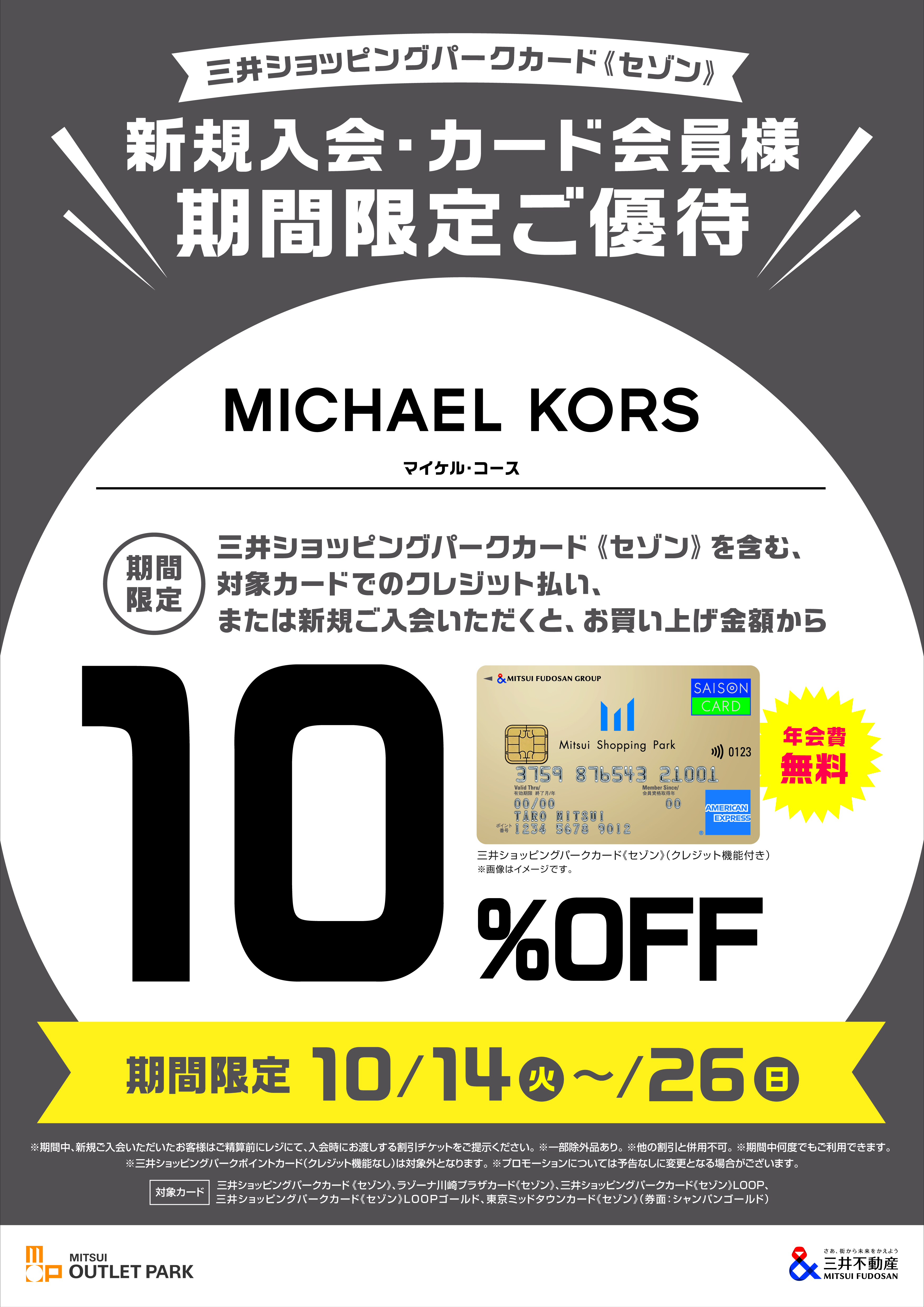 ぜひこの機会に、三井ショッピングパークカード《セゾン》のご利用・または新規ご入会いただき、おトクにMICHAEL KORSをお楽しみください。