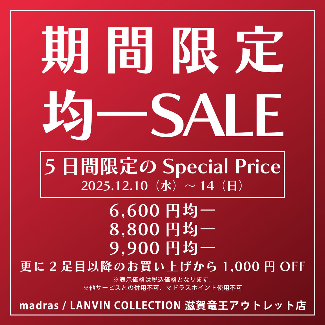 5日間限定のスペシャル均一セールを開催!全商品アンダー10,000円の均一プライスと大変お買い求め易くなっております。また、2足目以降はさらに1,000円OFFとなりますので、是非この機会にご利用ください!
