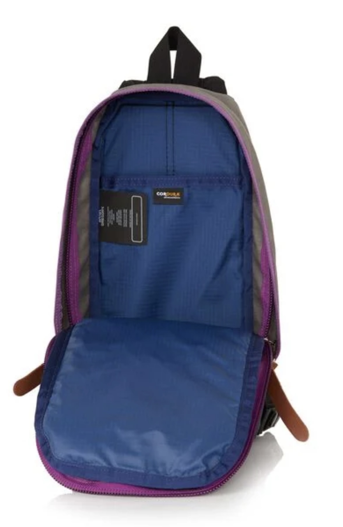 大開口のジッパー開閉式メインコンパートメント内部にはスリーブポケットが付属