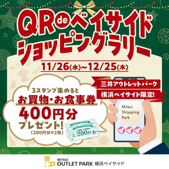 【11/26(水)~12/25(木)】横浜ベイサイド限定!QR de ベイサイドショッピングラリー開催のお知らせ!