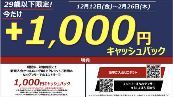 - 29歳以下限定!今だけ+1,000円分キャッシュバックキャンペーン