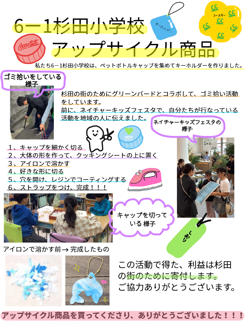 - 横浜市立杉田小学校6年生による「ペットボトルキャップ」のアップサイクル製品展示&販売