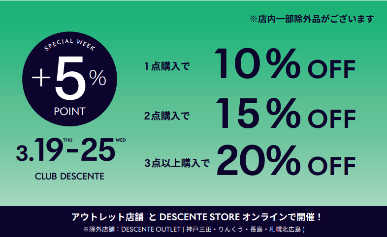 3/19(木)~ 3/25(水)日程で「CLUB DESCENTE SPECIAL WEEK」