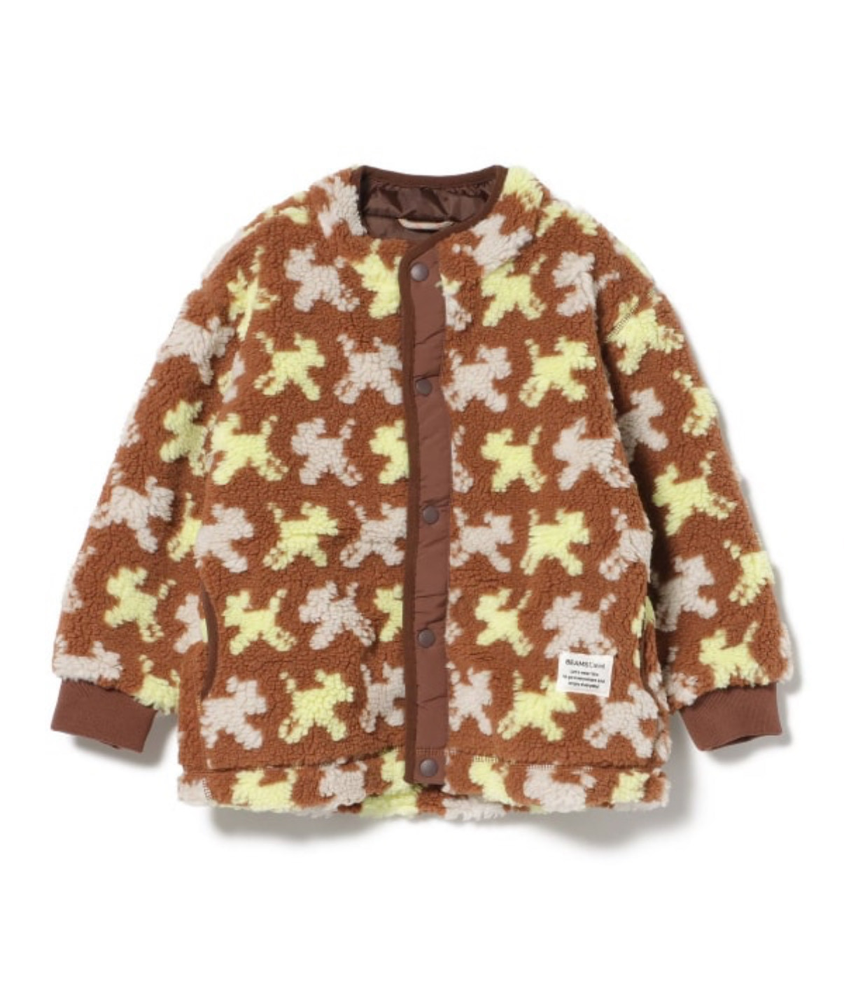 もこもこふわふわが気持ち良い、大人気ブルゾンの新モデルが登場!オリジナル柄のジャカードボアボア生地は花柄とワンちゃんをご用意。軽く羽織るのにちょうどいい厚みと、お子様自身でも開け閉めしやすいスナップボタン仕様で、自分でお着換えをする習慣作りんびも最適です。暗くなりがちの秋冬のコーディネートが、ぱっと明るく気分も晴れやかに。周りとの差がつくイチオシのアイテムです。