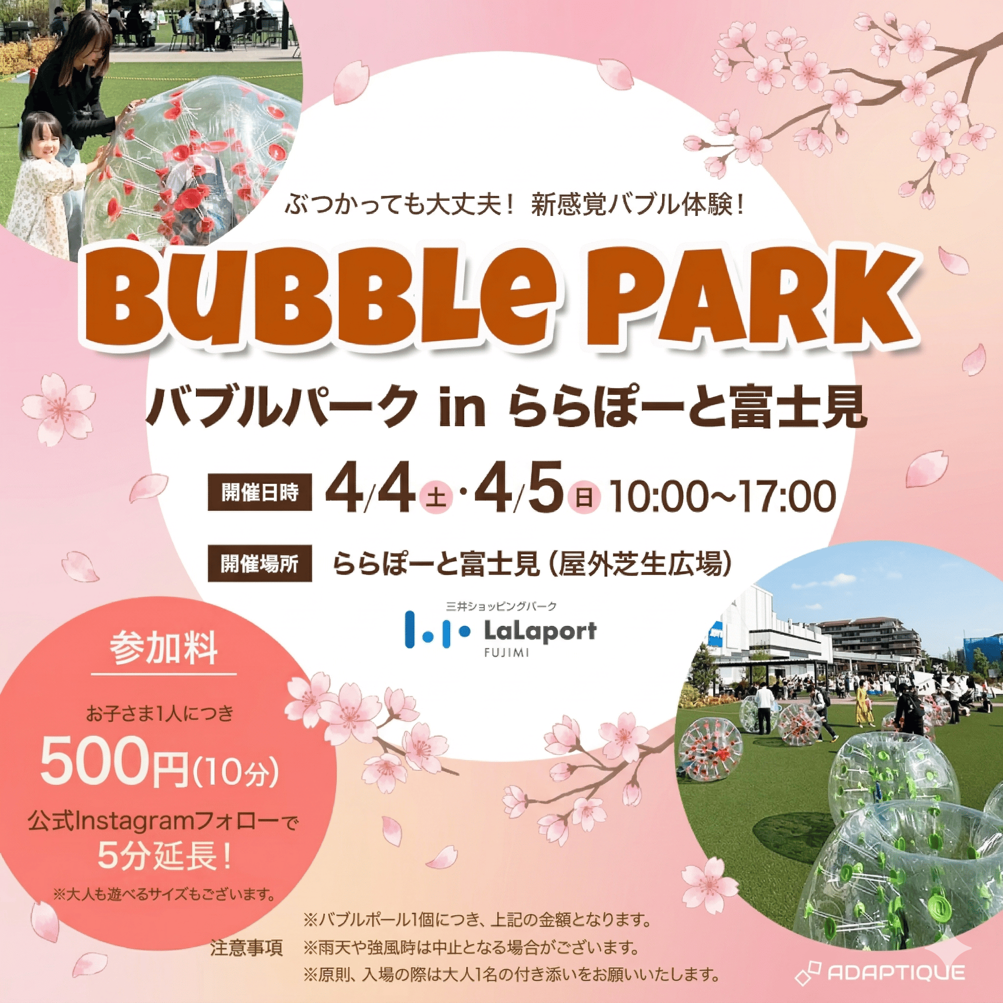 ぶつかっても大丈夫! バブルボールを活用した新感覚バブル体験イベントがららぽーと富士見に登場!