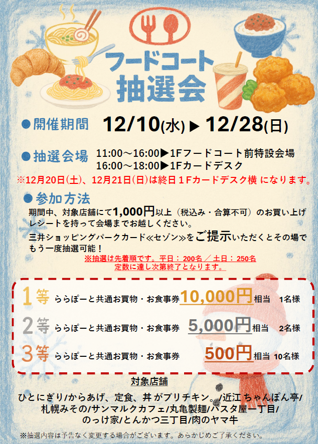 além disso, Ao apresentar o seu cartão Mitsui Shopping Park "Saison", você poderá receber1Você pode participar da loteria!