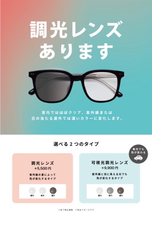 【メガネ】調光レンズ・可視光調光レンズ好評販売中!! - Tokyo Glass Company -galeria-