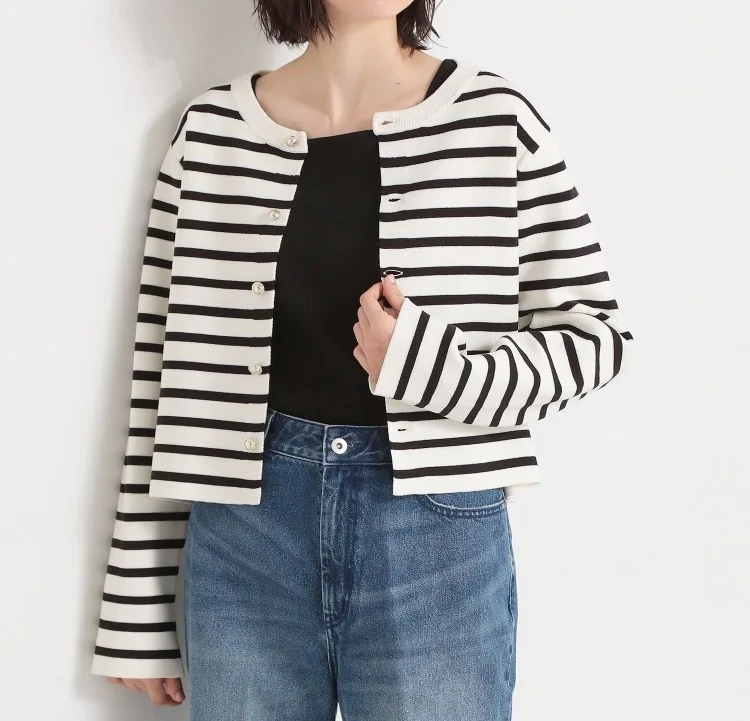 Este casaco de malha é confeccionado em ribana milanesa de alta qualidade e pode ser usado com elegância.