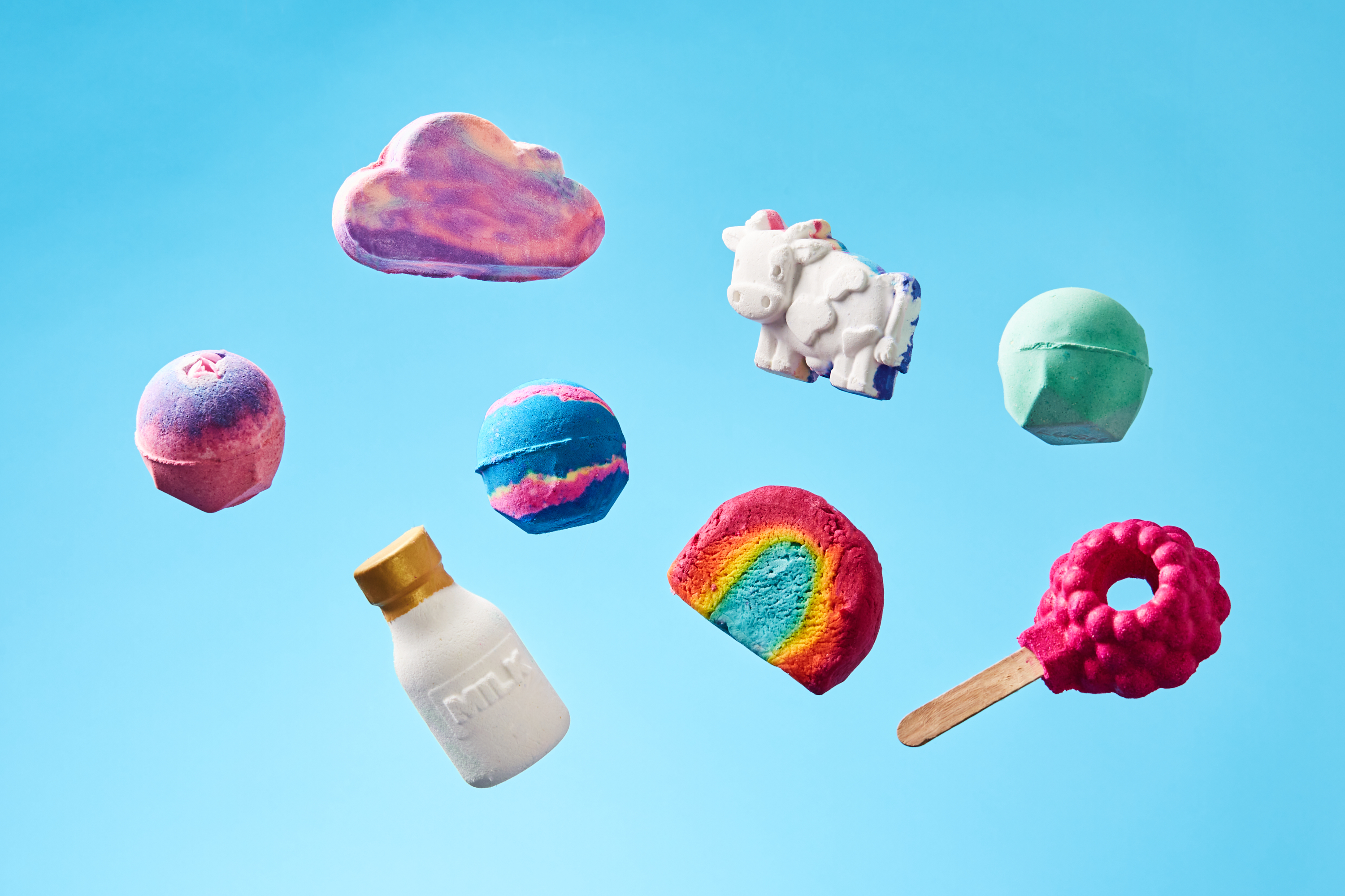 A Vaca Mágica do Toby é uma bomba de banho fofa em formato de vaca que transforma a água em um arco-íris ao se dissolver!