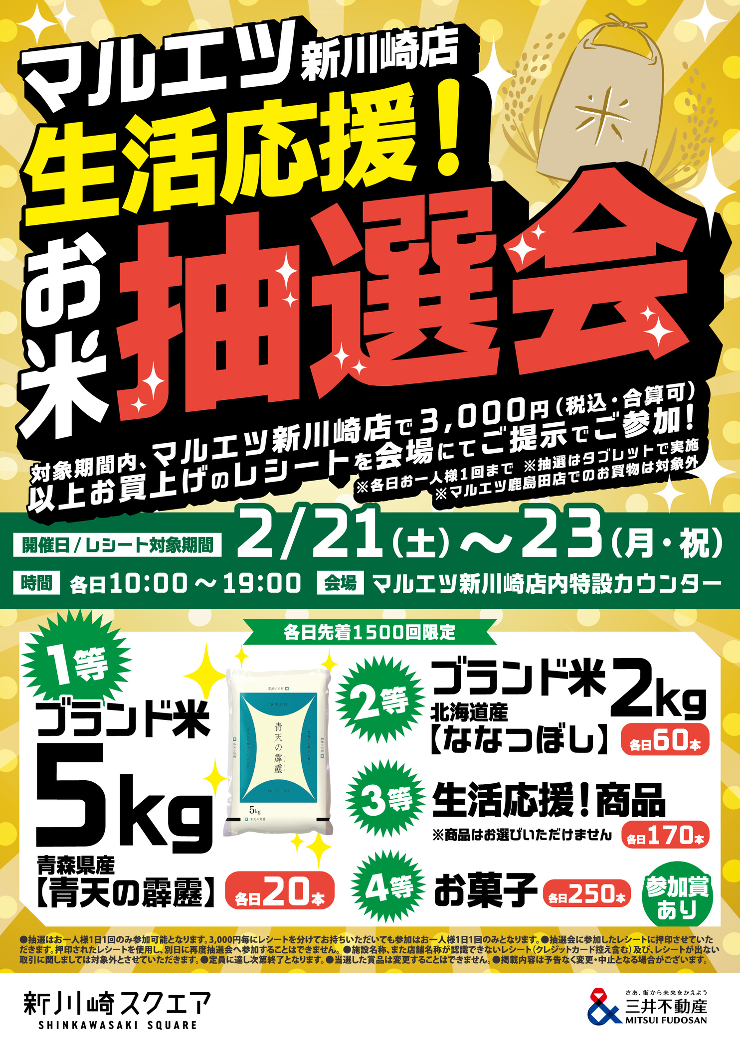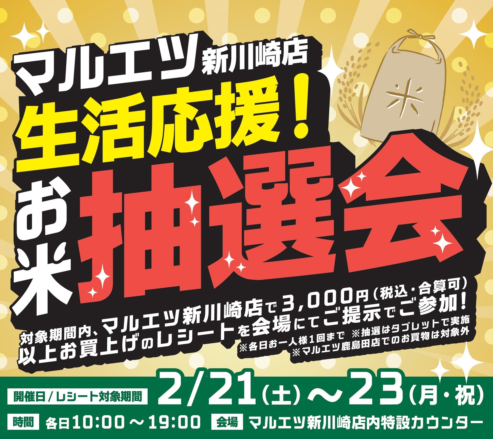 2/21(土)~2/23(月・祝)の期間中、新川崎スクエア「マルエツ新川崎店」にて 〈生活応援!お米 抽選会〉を開催!