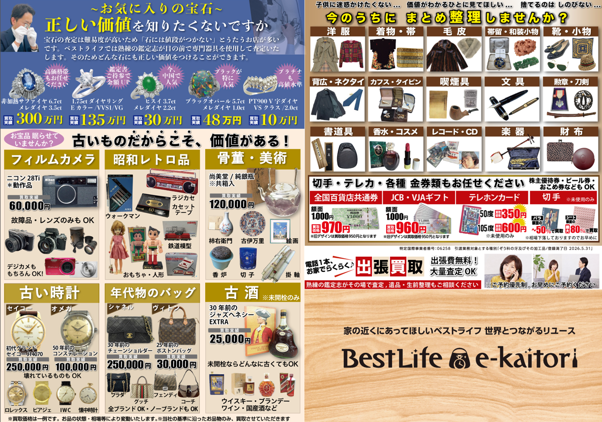 皆さま、こんにちは。買取専門店ベストライフです。