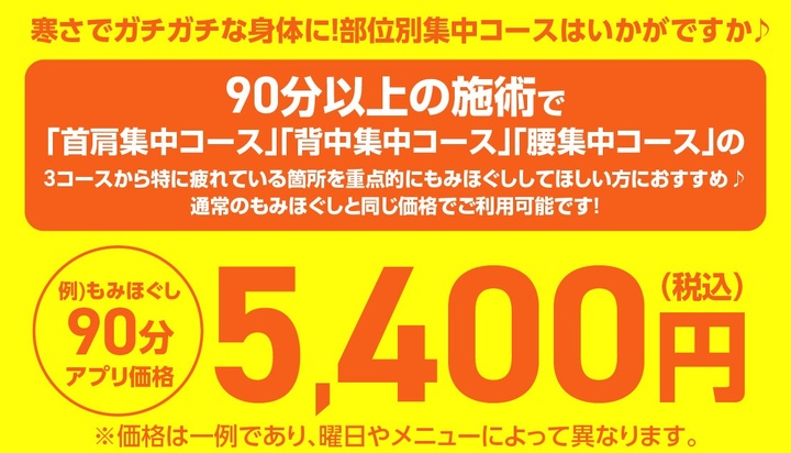 寒さでガチガチな身体に!部位別集中コースはいかがですか♪