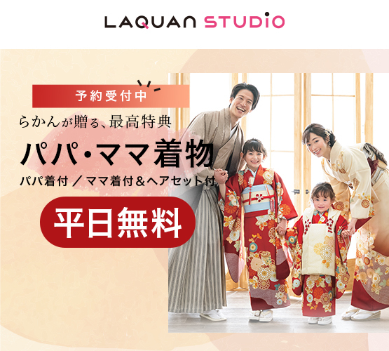 「こども商品券」ご利用対象店舗 衣装・着付・ヘアメイクも充実した写真館がオープン! 1921年ニューヨークで創業の「らかんスタジオ」は、結婚写真、七五三、成人振袖、お宮参りを撮影している写真館です。衣装、着付、ヘアメイクも充実。クラシックからポップな雰囲気まで多彩な映像を演出します。 <ポイントカード・SNS・アプリ情報> 【LINE】 おトクな割引クーポンや最新キャンペーン情報を配信。 【Facebook】 おすすめ撮影についての記事やイベント情報をアップ。 【instagram】 【twitter】 【メルマガ】