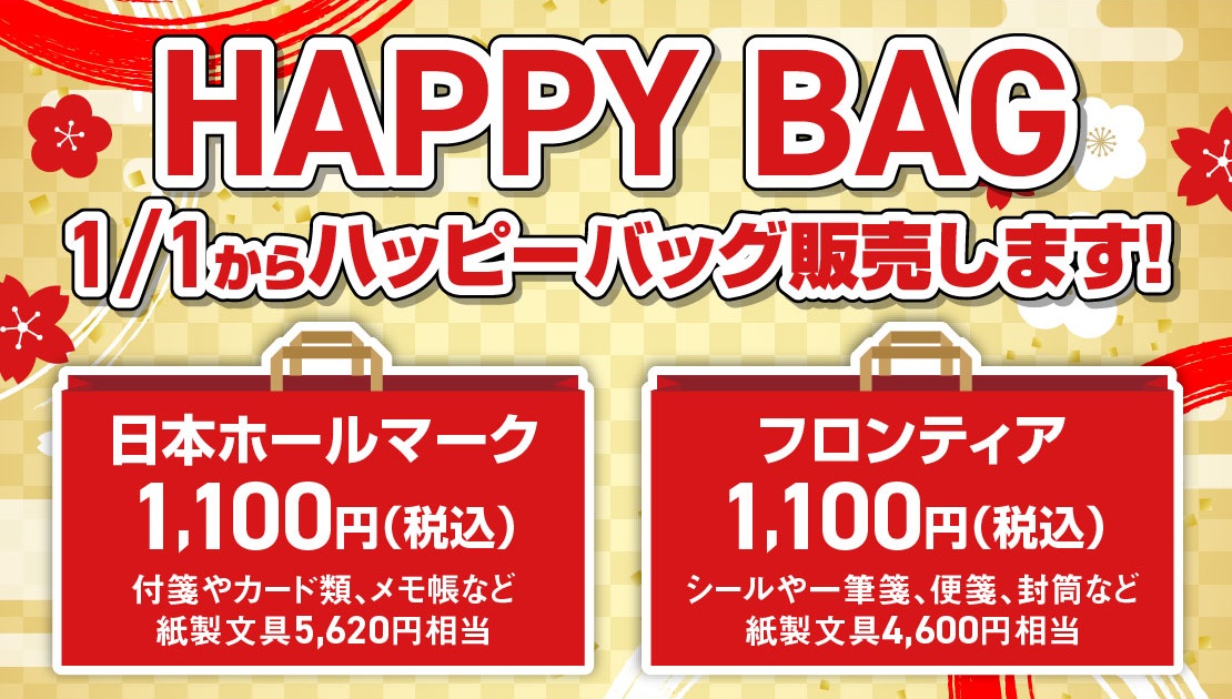 今年も日本ホールマークとフロンティアのハッピーバッグを販売します。