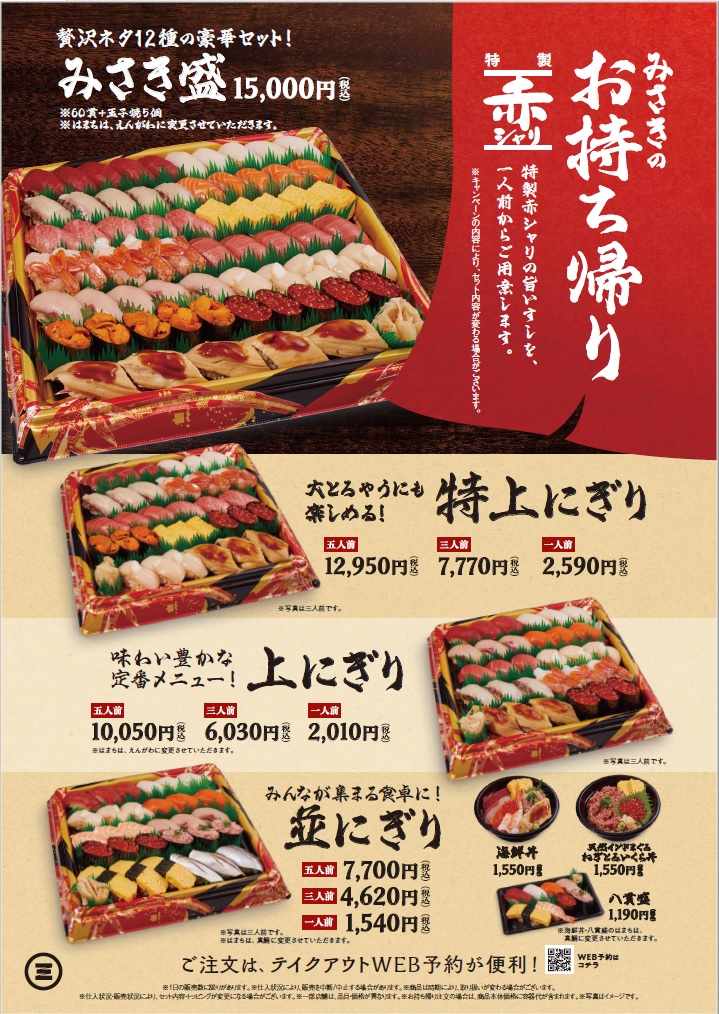 您可以輕鬆地將使用我們的特製紅米和新鮮食材製作的壽司和海鮮飯帶回家。