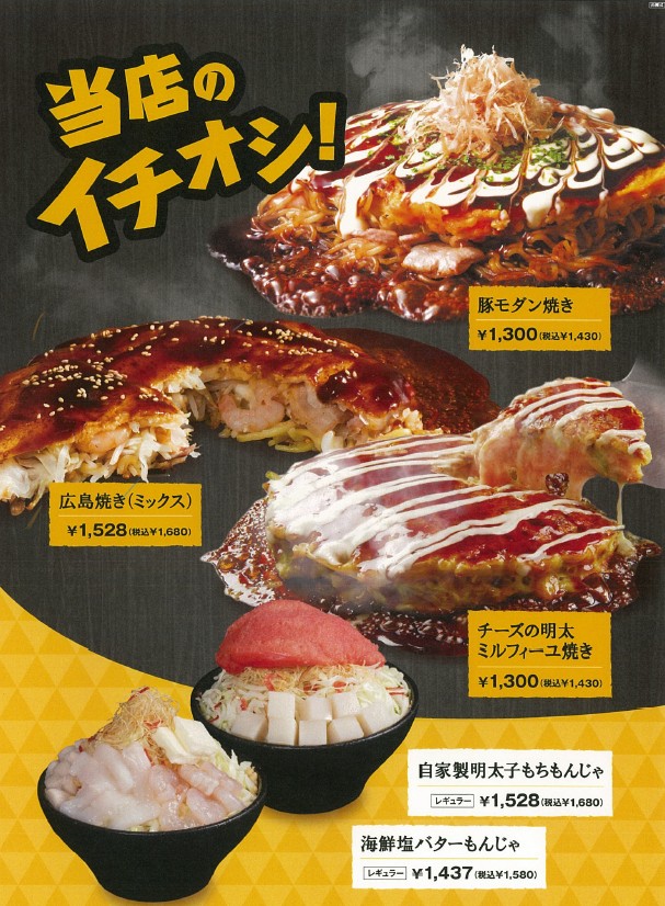 本店大受歡迎的雜樣煎菜餅&文字燒