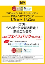 [1月9日(週五)- 1月25日(週日)] “LOFT” 三井購物公園卡“Saison”新會員活動