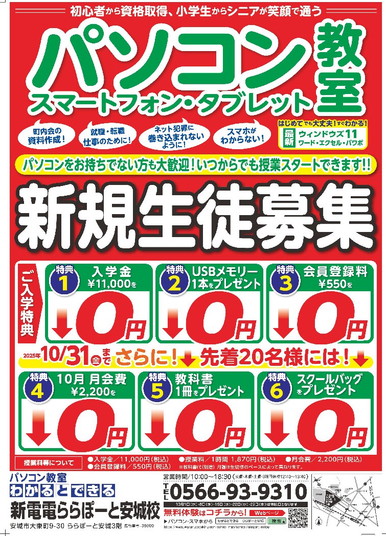 - 秋季學習支援活動!電腦和智能手機的事情的話,請交給我。到10月31日星期五為止