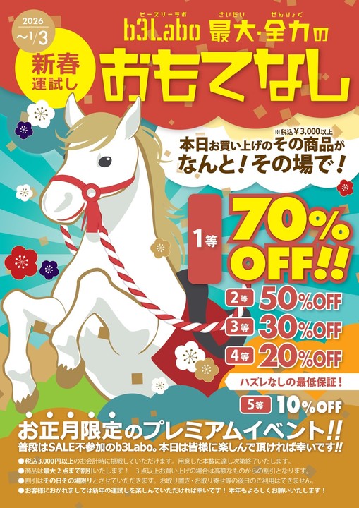【1/1~1/3限定】 舉辦無中獎抽獎活動!!