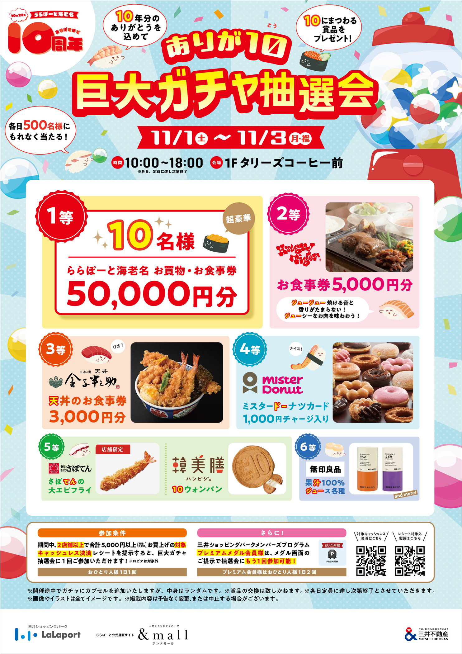 LaLaport海老名10 週年紀念感謝 10 個巨型扭蛋抽獎☆彡