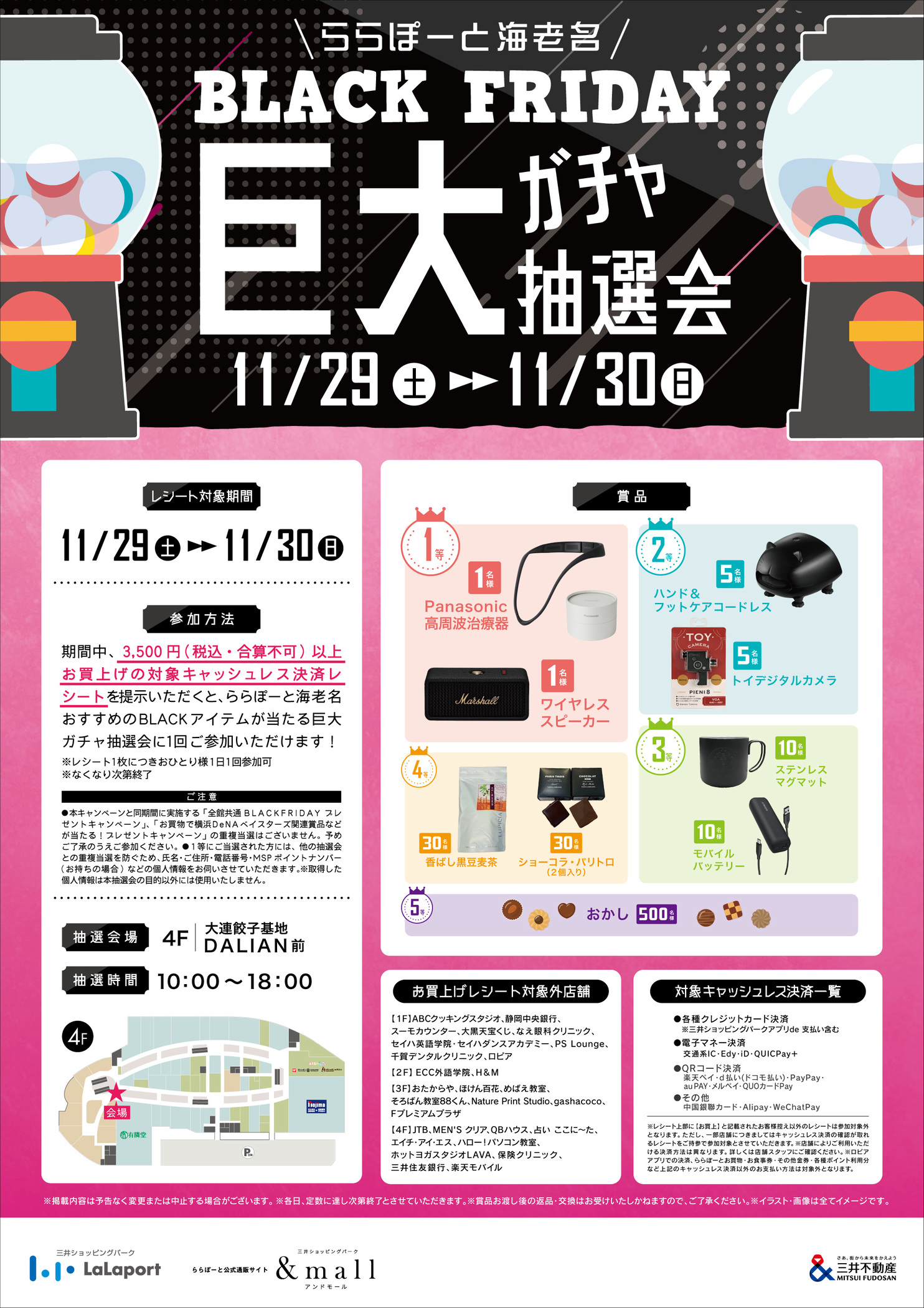 黑色星期五在LaLaport海老名購物,即可參加抽獎!