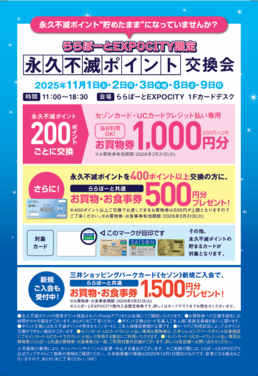 [11月1日(週六)- 11月3日(週一,假日),11月8日(週六)- 11月9日(週日)] LaLaport EXPOCITY獨家永恆積分兌換活動