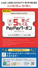 - 【12/12 (周五) ~12/30 (周二) 】 使用PayPay支付,PayPay最多可返還5%積分的優惠券!