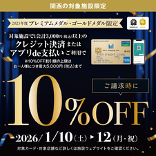 如果您使用符合資格的銀行卡(包括應用程式支付的二維碼)支付 3,000 日元或以上的消費(含稅),即可享受 10% 的折扣!